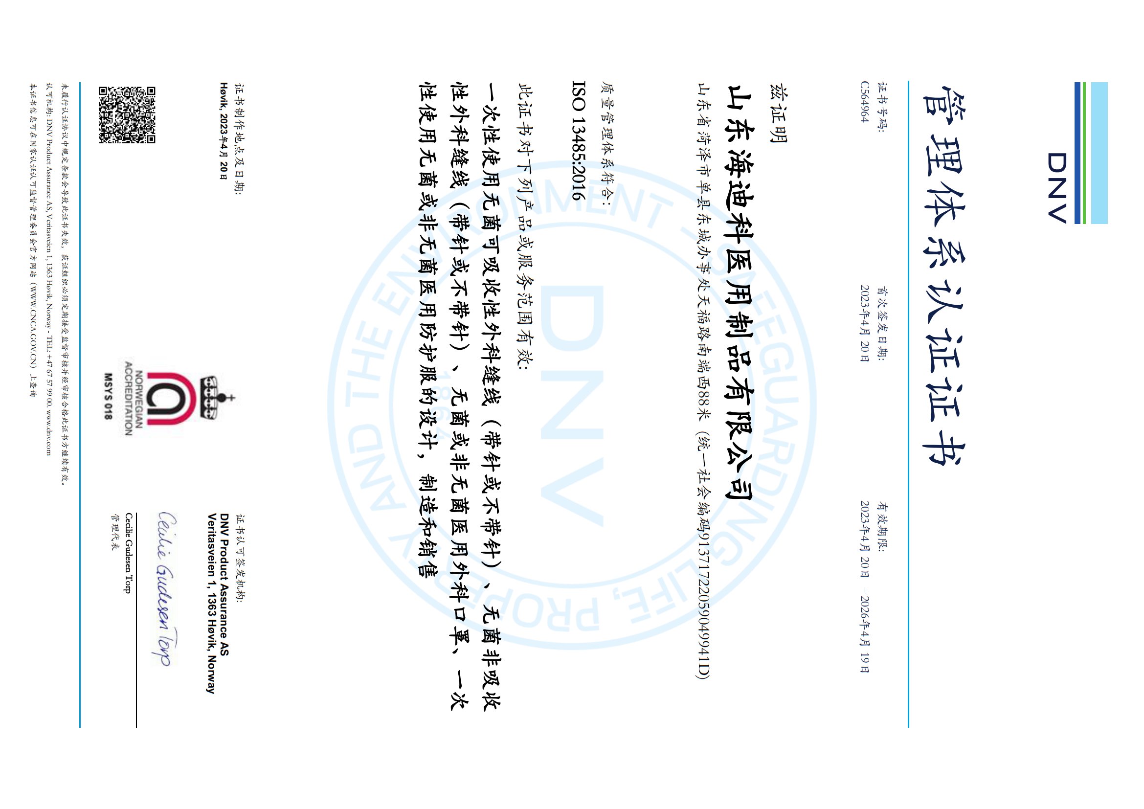 • 海迪科醫療器械生產許可證